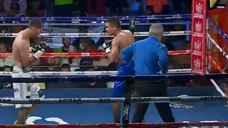 Ambos púgiles cruzaban manos durante los últimos golpes del tercer asalto cuando un gancho de derecha de Valenzuela impactó en la autoridad del combate.