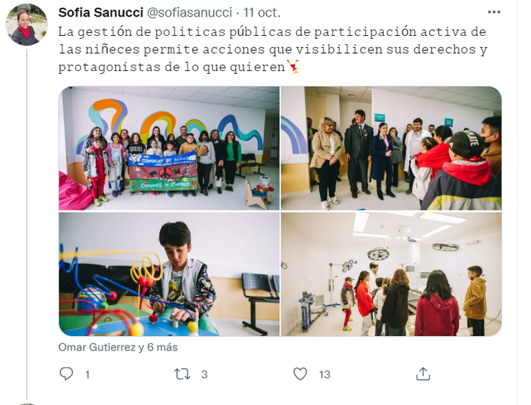 El servicio de Pediatría del nuevo edificio del hospital Ramón Carrillo de San Martín de los Andes cuenta con un sector diseñado por niñas y niños, a través del proyecto Arquideas, que impulsó la subsecretaría de Niñez y Adolescencia, desde el ministerio de Niñez, Adolescencia, Juventud y Ciudadanía en conjunto con el ministerio de Salud y el municipio de esa localidad.