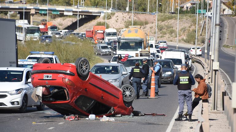 La División Tránsito de la Policía permaneció se acercó al lugar para realizar las pericias pertinentes e intentar ordenar la circulación de vehículos, que sufrió importantes demoras a raíz del bloqueo en ese sector de la calzada por el auto volcado.