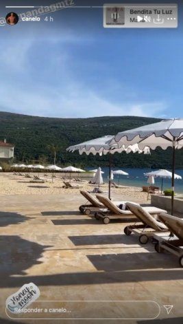 Por medio de redes sociales, Canelo compartió algunos de los detalles íntimos de cómo festejan su luna de miel. Subió unas historias a Instagram en donde se aprecia que están en una lujosa playa, disfrutando del sol, tomando cerveza y acompañados de música en vivo.