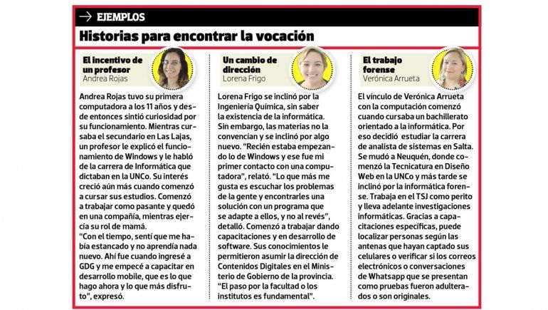 “Muchas chicas no eligen la carrera porque no saben de qué se trata y piensan que los que estudian informática se dedican a arreglar computadoras, porque es lo único que observan”, señaló y aclaró que la aplicación de los conocimientos al hardware es solo una de las decenas de posibilidades que ofrece este tipo de estudios.