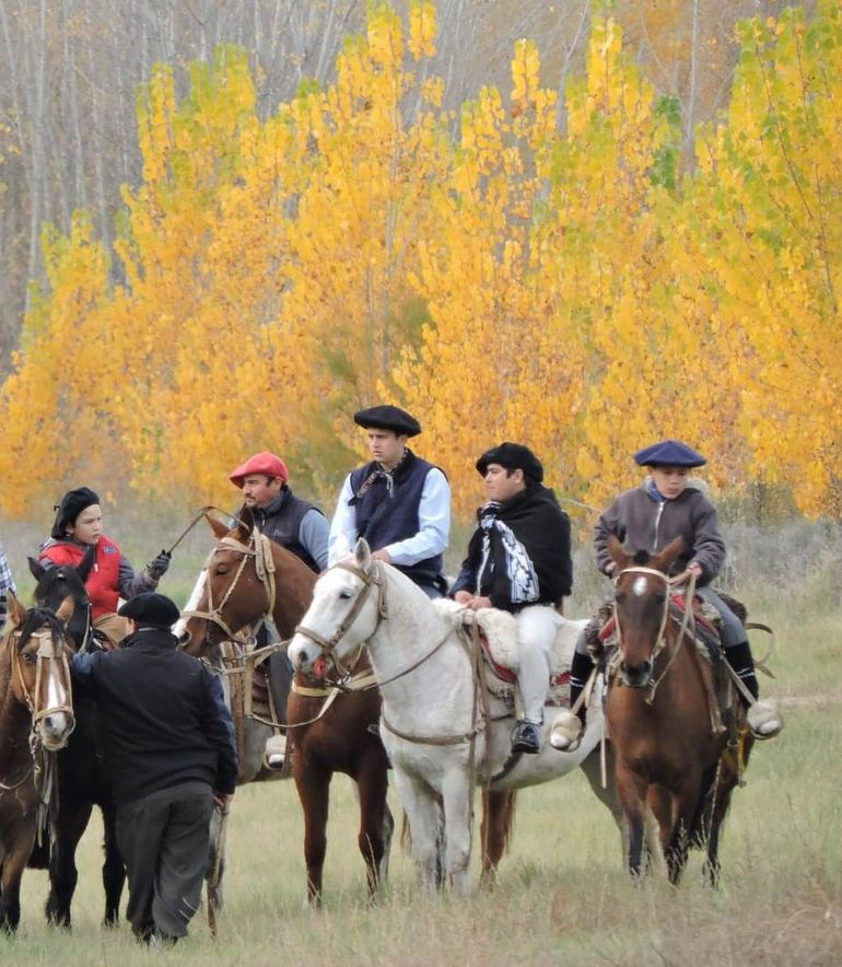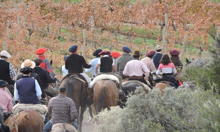 Una cabalgata con los bellos paisajes otoñales del Chañar y los viñedos de Bodega Schroeder