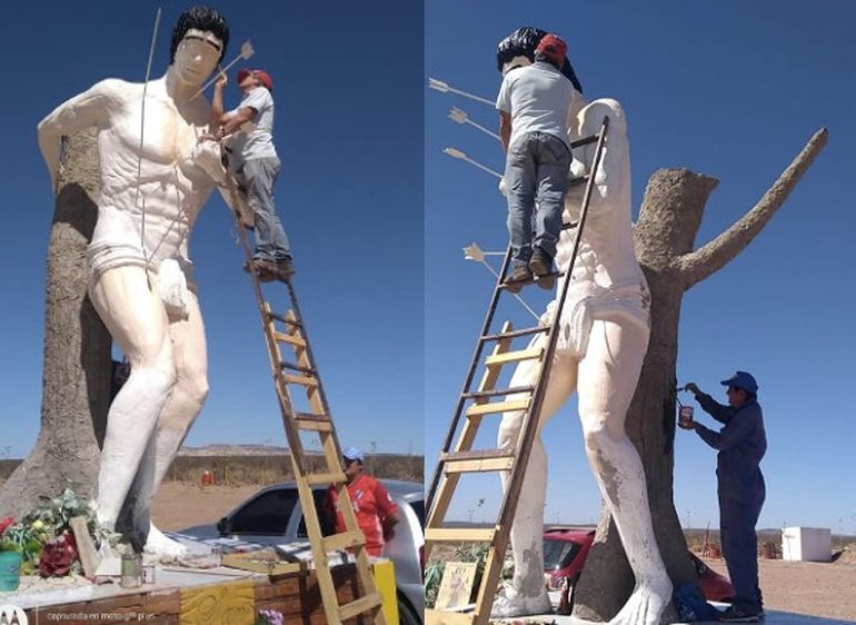 Desde ese momento, Juan Carlos con su grupo de ciclistas devotos de San Sebastián comenzaron a pensar de qué forma podían volver a poner de pie el santuario. Entre las hipótesis que barajaron debían colocar una imagen que sea difícil de vandalizar. “Ahí se nos ocurrió hacer una estatua de cemento de San Sebastián”, dijo.