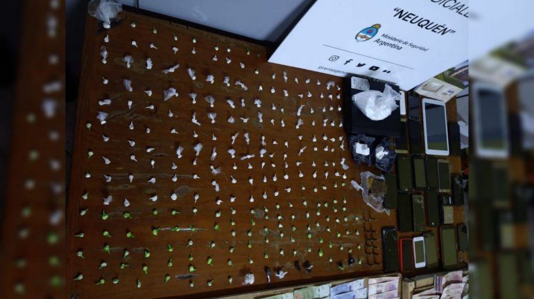 Se supo que encontraron más de 253 dosis de cocaína fraccionadas y listas para la distribución; algo de marihuana y una suma que rondaría el millón de pesos en efectivo. También fueron secuestrados gran cantidad de teléfonos celulares, balanzas de precisión, elementos de corte, un vehículo, anotaciones y documentación de interés para la causa. Incluso había tiza para estirar el estupefaciente.