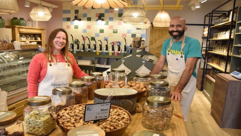 Carolina, su pareja, trabaja en el área de recursos humanos en una compañía de la zona y, entre los dos, se reparten sus horas juntos a dos empleados para brindar una atención completa en el local de Juan B. Justo al 500, donde se combina la vieja venta de productos a granel con un cuidado diseño que busca generar una experiencia distinta en el usuario.