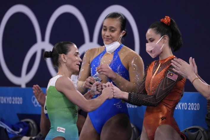 Oksana Chusovitina, de 46 años, se despidió de los Juegos Olímpicos de Tokio como la gimnasta más veterana de la historia. La uzbeka, con 14,166, no pudo entrar en la final de salto, su gran especialidad, pero fue despedida con una ovación unánime por todos los presentes en el Ariake Gymnastics Centre.