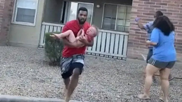 Según explicó, en ese momento el nene "giró en el aire como una hélice". "Hice lo mejor que pude. Su cabeza aterrizó perfectamente en mi codo. Su tobillo se torció cuando caí al piso", agregó. Luego, Blanks abrazó al nene mientras gritaba y le repetía que "todo iba a estar bien, que todo iba a estar bien". Una vecina acercó una sábana húmeda para aliviar las quemaduras del pequeño.