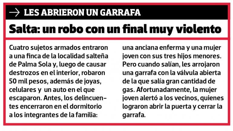 Antes de tomar esta triste determinación, la madre había denunciado en la Comisaría 10ª la desaparición de ambos adolescentes. ¿Qué había pasado? Ella los tenía encerrados en su casa pero los jóvenes rompieron la reja y salieron. Y mientras la mujer pedía ayuda a los efectivos porque no encontraba a sus hijos, estos asaltaban a una señora a la que le quitaron la cartera en una parada de colectivos de un barrio vecino. Y cuando la Policía salió a patrullar en busca de los chicos, fueron alertados de un hecho delictivo que involucraba a cuatro ladrones: dos de ellos eran los hijos de esta mujer. Las agentes pudieron capturar a los cuatro, aunque sólo uno quedó detenido, el que era mayor de edad; los otros tres, incluidos los mencionados dos adolescentes, fueron liberados y puestos nuevamente a disposición de su madre. Los jóvenes habían sido capturados con un arma de fuego calibre 32 y municiones, y aunque estén libres, la causa que los involucra está a cargo del Juzgado de Menores 1.