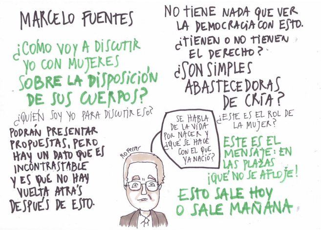 La ilustradora artística Romina Ferrer hizo un seguimiento muy particular del debate histórico en el Senado de la Nación sobre la despenalización del aborto. A través de sus redes sociales, la representante de la lucha feminista expresó con trazos en papel cada una de las exposiciones de los legisladores y sus principales conceptos.
