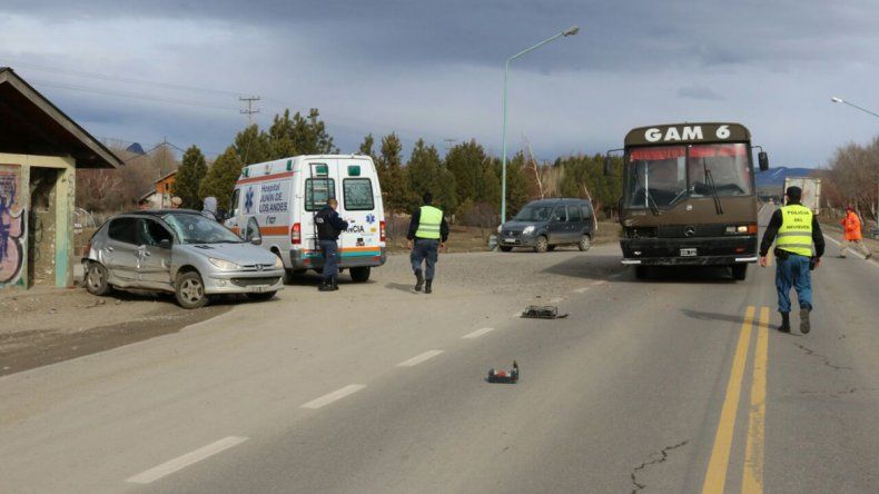 La mujer que conducía el Peugeot 206 circulaba por la dársena y, al subir a la ruta, no advirtió al colectivo y la chocó en el lateral derecho.