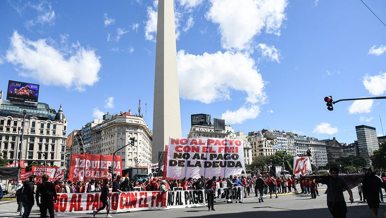 En tanto, el espacio Encuentro Memoria, Verdad y Justicia -que integran más de 200 organizaciones de derechos humanos, sociales, estudiantiles, de trabajadores y de la izquierda política- se concentra desde media mañana en el Obelisco y comenzó a ingresar a la Plaza a partir del mediodía en tres columnas -por la avenida de Mayo y las diagonales Norte y Sur-, con el agregado de la consigna "No al acuerdo gobierno-FMI".