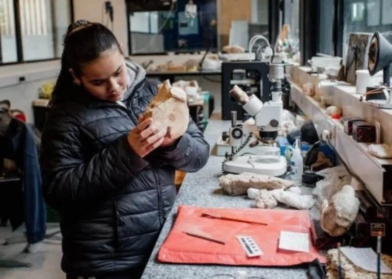 "Me emocioné mucho y lo cuidé porque tenía miedo de que se rompiera más de lo que ya estaba", contó y sostuvo que "no conocía" el Museo de Ciencias Naturales marplatense. Victoria, junto a su familia, visitaron el lugar en el que se encuentra el fósil por estas horas, donde es estudiado por antropólogos del museo y donde quedó registrado el hallazgo, y conversó con el equipo profesional conformado por Victoria Sarasa, Matias Taglioretti y Fernando Scaglia.
