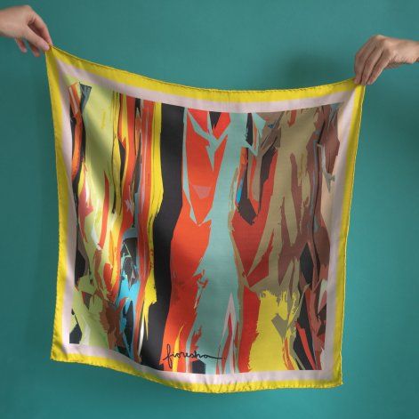 “La seda natural es nuestro lienzo: nuestros pañuelos expresan el carácter único y noble del material, tan versátil que intensifica los colores vibrantes y, si lo cuidás, será una prenda que te acompañará durante años”, describió la artista neuquina sobre su producto final.