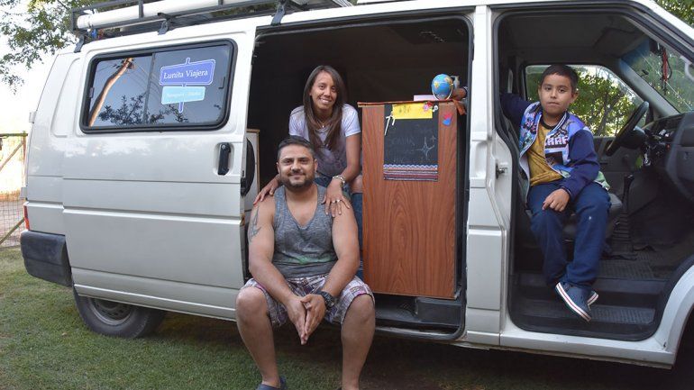 La combi cuenta con baño, cama y agua potable. Lautaro seguirá la primaria a distancia