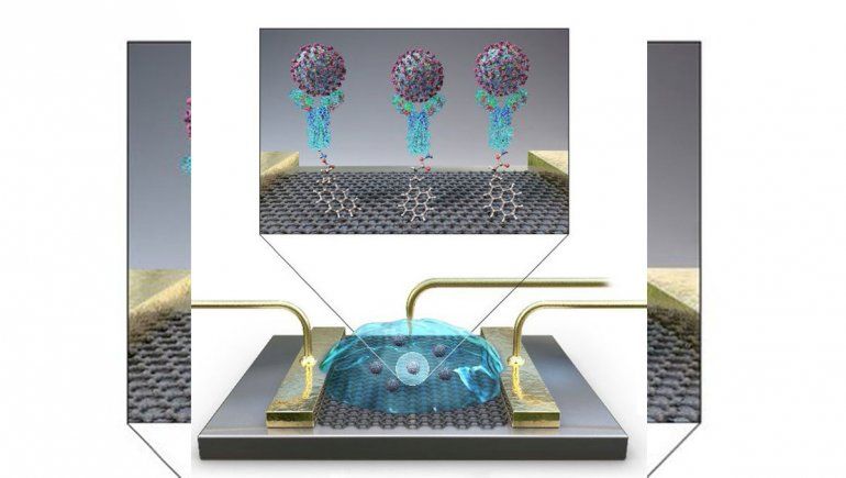 Los expertos crearon un dispositivo de biosensores basados en transistores de efecto de campo y recubrieron láminas de grafeno, que se utilizan como área de detección. Luego, le agregaron la proteína “spike” purificada o el virus SARS-CoV-2 (que causa el COVID-19) cultivado.