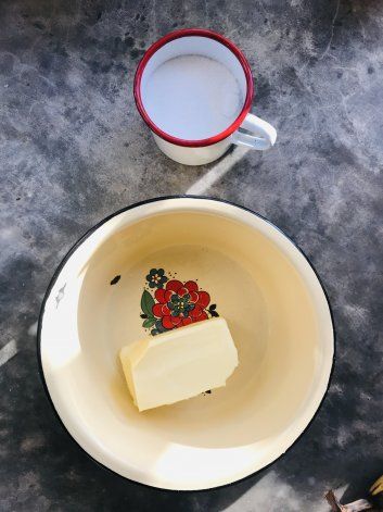 • Batir el azúcar con la manteca pomada, es decir blanda a temperatura ambiente durante 4 minutos, logrando una crema. (batidora eléctrica ok!)
