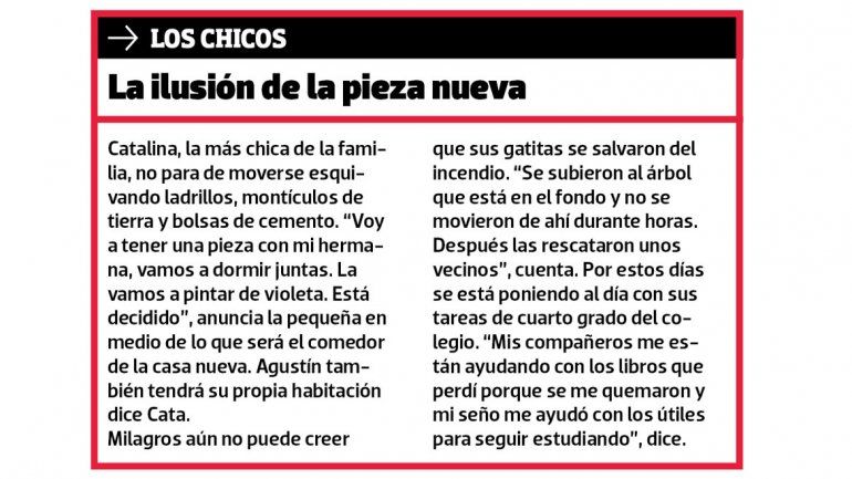 No podía ser otro que este albañil que les había levantado la casa hace más de diez años, el que los recibiera en medio de la desolación provocada por un cortocircuito la madrugada del 16 de julio cuando Marcelo, su mujer Adriana Casas y sus tres hijos, Agustín (12), Milagros (9) y Catalina (5), disfrutaban de unas vacaciones en Villa Pehuenia.