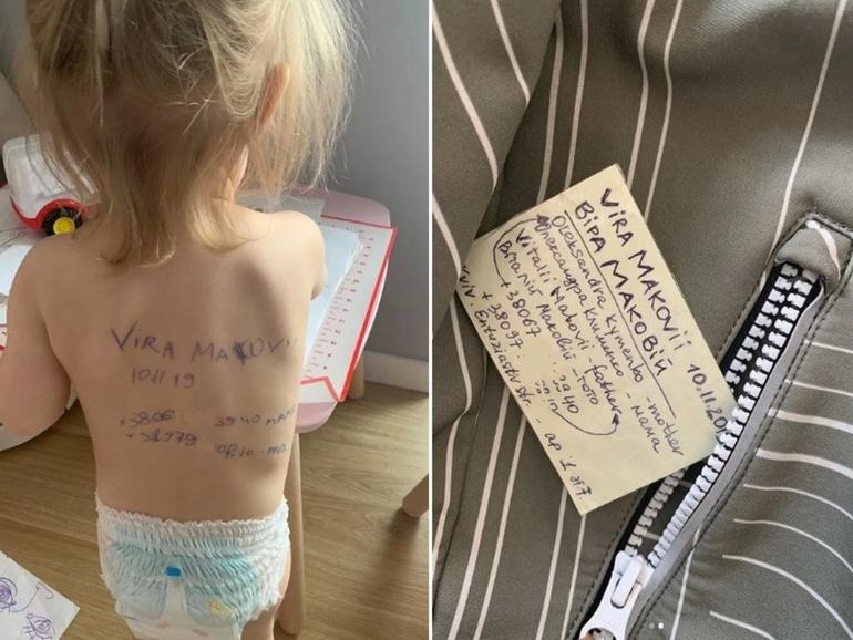El posteo muestra a Vira, su hija, con los datos familiares inscriptos en su espalda y una foto que en el reverso cuenta con información más detallada sobre quiénes son. “Me conmovió tanto que pasé 5 minutos buscando el botón de ‘publicar’. Acumulaba pensamientos y sentimientos, pero no tenía energía para publicar. Pero debo hablar claro”, relató Oleksandra, que ahora ya se encuentra en un lugar seguro con su familia.