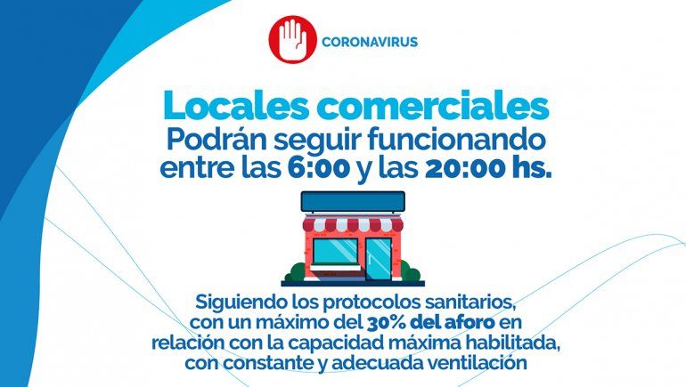 En el Decreto Municipal 0417, la Municipalidad de la capital provincial permitió la apertura de comercios y la circulación de personas desde las 6 hasta las 20, dejando dos horas más respecto del cierre previsto hasta el domingo, que estaba pautado a las 18.