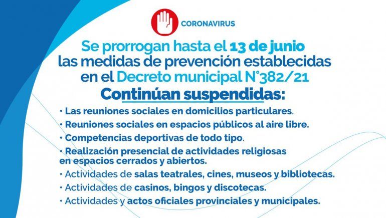 La Municipalidad de Neuquén resolvió aplicar habilitaciones a los comercios y ampliar el horario de circulación hasta este domingo 13 de junio. Argumentaron que las medidas se dieron para mitigar "los lugares en donde los vecinos se aglomeraban". Estas medidas regirían, en principio, hasta el 13 de junio.