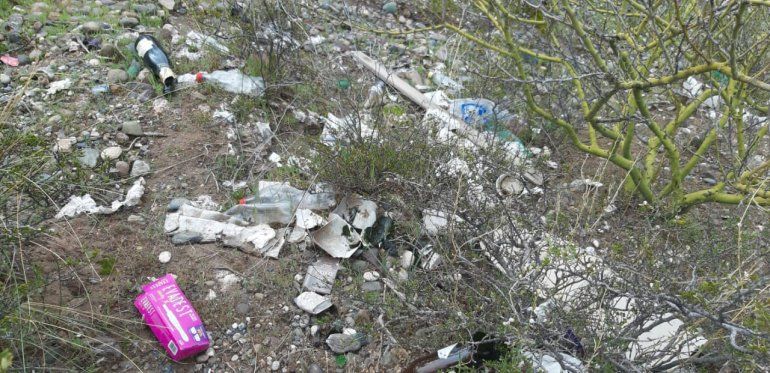 LM Neuquén hizo una recorrida por la zona y observó preservativos usados, test de embarazos, barbijos, bolsas, paquetes de cigarrillos, restos plásticos y hasta un perro muerto.