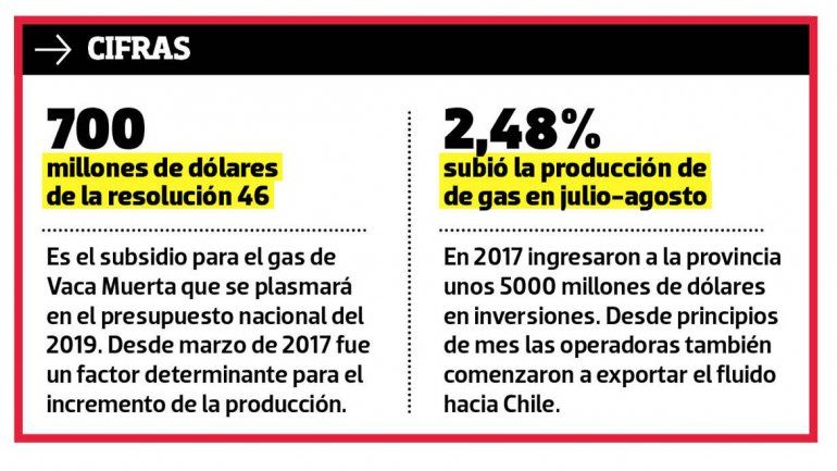 A ese escenario se suma el cuadro que beneficia -por ahora- a seis yacimientos de gas ubicados sobre Vaca Muerta, que reciben el espaldarazo del subsidio establecido en la resolución 46 del Ministerio de Energía de la Nación. Les concede este año tres dólares más por millón de BTU producido por encima del valor promedio de la cuenca, algo que también impulsó el aumento de la producción.