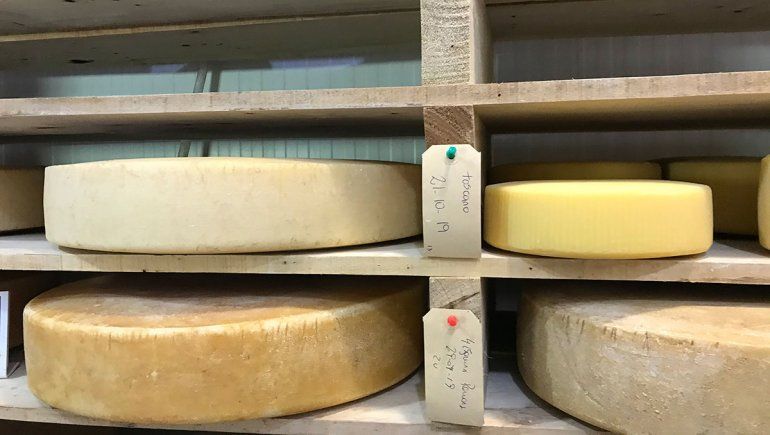 Hay un sector de laboratorio donde se mide la acidez y el PH de los quesos y dos cámaras donde se trabaja: una con duros/semiduros y algunos blandos de cáscara lavada, y otra de azules.