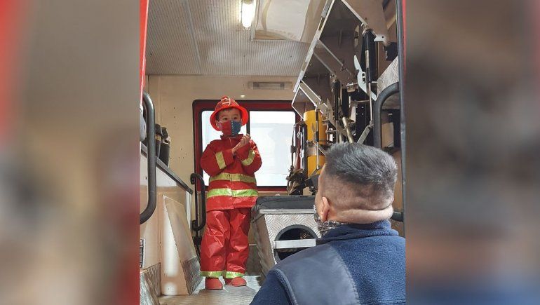 El nene recibió como regalo de cumpleaños un disfraz de bombero, el cual no dudó en ponerse y pedir ir a visitar a los bomberos del cuartel. "Él siempre dice que quiere ser bombero o policía, así que lo llevamos", detalló Samira.