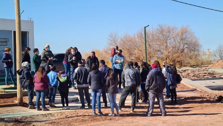 En este contexto, el pueblo se enteró que algunos docentes se convocarían en el lugar para realizar una intervención en la escuela y se concentraron para impedir que suceda.