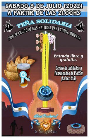 Los vecinos de China Muerta en Plottier están más cerca de que el Gobierno provincial inicie la obra para poder conectarlos a la red de gas, pero mientras tanto realizarán una peña folclórica para recaudar dinero para comprar leña para los sectores más vulnerables. Los que lleven además ropa de abrigo para donar participarán de un sorteo por tortas dulces realizadas por los mismos pobladores.
