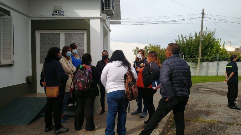 Luego marcharon hasta la Municipalidad donde también fueron recibidos por los funcionarios Cristian Tracana, subsecretario de Transporte, Hugo López, secretario de Movilidad Urbana y Julia Reyes, coordinadora General del Municipio.