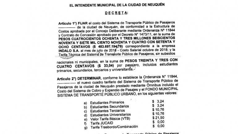 La municipalidad de Neuquén aprobó por decreto una nueva suba del boleto de colectivo urbano, que pasará de 19,15 a 21,50 pesos. Esto significa un 12,5 por ciento con respecto a la tarifa anterior.