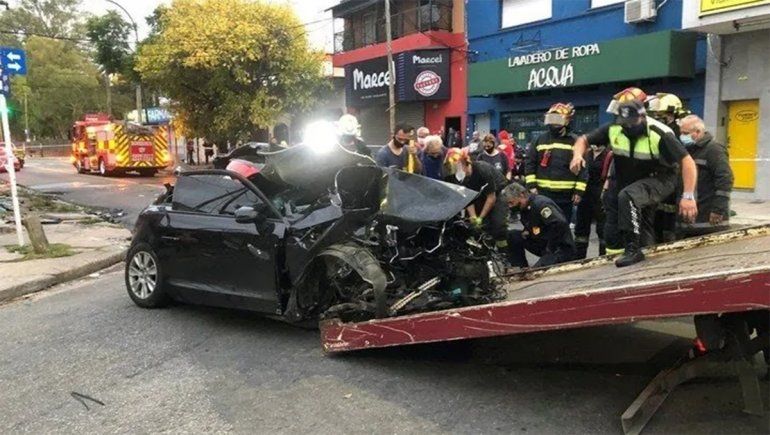 “Estaba solo el auto, al chocar contra la esquina, 'levanta vuelo' e impacta contra una columna”, relató un bombero. El motor del Audi se desprendió y apareció a metros del lugar.