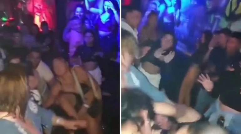 Mientras, alrededor de ellas, algunos de los presentes continuaban bailando como si nada -la música en ningún momento se interrumpió-, en tanto que otros observaban la situación atentamente. A pesar de que el video dura algunos segundos, se supo que el enfrentamiento duró un tiempo más hasta que lograron separarlas.