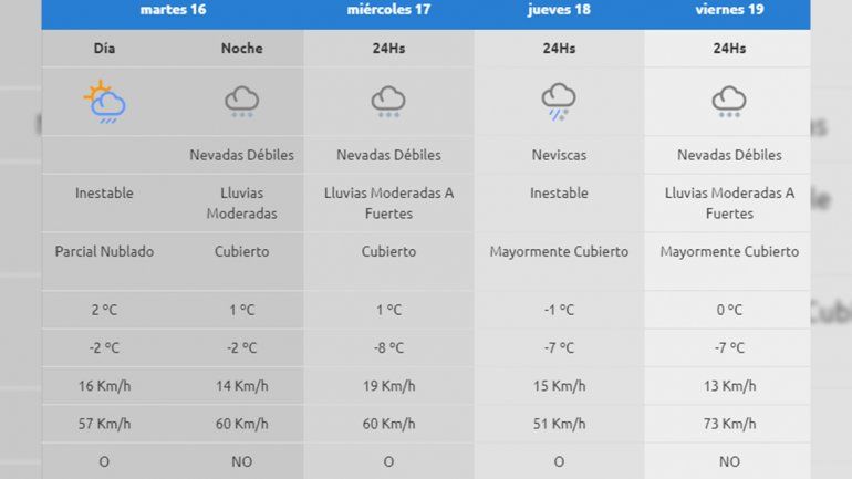 Luego de un fin de semana en el que las neviscas vistieron de blanco a las localidades cordillerana, desde la AIC informaron que a partir del martes se vivirá otro periodo de nevadas y lluvias, el cual se extenderá, en principio, hasta el viernes.