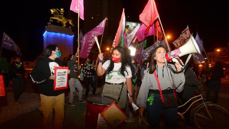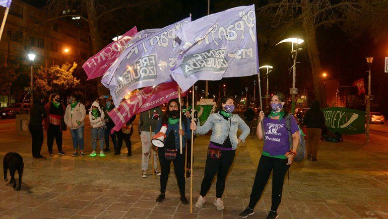 El viento y la llovizna esporádicas hicieron que las distintas actividades programadas para la tarde noche sean canceladas o reprogramadas. Pero, más allá del mal clima, decenas de mujeres se mantuvieron unidas y agrupadas frente al monumento de San Martín a la espera de la votación.