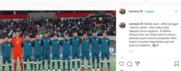 Y luego confesó que el mensaje de Messi en su cuenta de Instagram, caliente con el árbitro, lo escribió el propio Leo: "Vieron el Instragram de Messi, no se lo mandó a escribir a nadie. Llegó al vestuario, se bañó y lo escribió él en caliente", indicó.