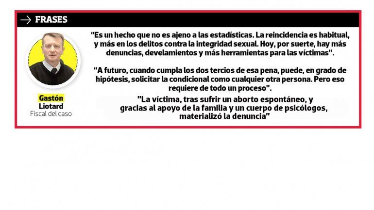De inmediato, el fiscal Gastón Liotard en conjunto con la Defensoría de los Derechos del Niño y el Adolescente avanzaron en la acusación por el delito de abuso sexual con acceso carnal agravado por el vínculo y se le dictó la prisión preventiva. El martes, en una audiencia de control de acusación se terminó llegando a un acuerdo parcial por el que el hombre admitió su responsabilidad para evitar llegar a un juicio por jurados. El acuerdo suscripto fue homologado por la jueza Patricia Lupica Cristo.