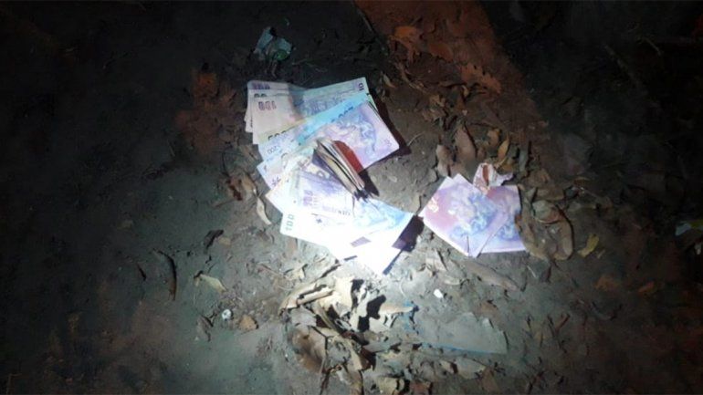 Como parte del procedimiento, la policía realizó un rastrillaje por la zona y encontró gran cantidad de billetes tirados que sumaban 3305 pesos.