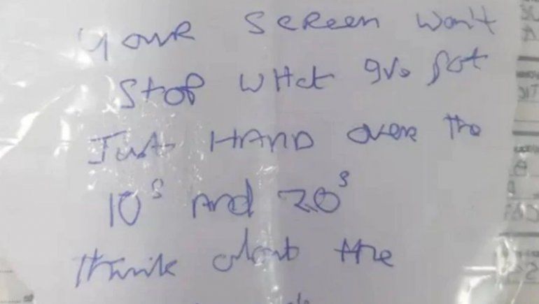 Por último, el personal de la entidad logró entender lo que decía la nota viral en las redes: “Su pantalla no detendrá lo que tengo, solo entregue los de 10 y los 20. Piense en el cliente”. Esto dio a entender que se trataba de un robo presuntamente a mano armada, el cual por fortuna y por la horrible manera de escribir de Alan no se concretó.