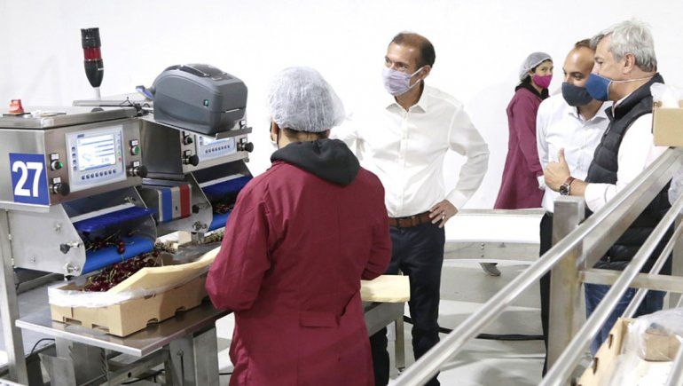 El gobernador y el intendente recorrieron la planta de empaque de cerezas de la empresa Vista Alegre SRL, oportunidad en que pudo presenciar la labor de los operarios en el proceso de selección, procesamiento y empaque de la fruta, que tiene como destino a China, Estados Unidos y España, entre otros mercados.