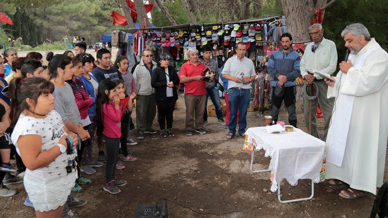 Para agradecer, pedir u ofrendar, se concentraron unas doscientas personas que circulan por la Ruta 7 hasta el santuario, en el ingreso a la localidad, en la calle Islas Malvinas.