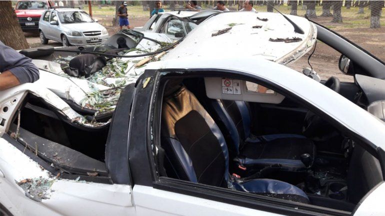 Una fuerte ráfaga de viento, en el marco de la tormenta desatada en la tarde del martes, hizo caer el viejo sauce llorón que arrastró varias ramas grandes de otros árboles próximos. El sauce aplastó al medio al Fiat Siena de un trabajador que realizaba tareas de electricidad en una vivienda, mientras que otras ramas cayeron en el lote de una casa del sector.