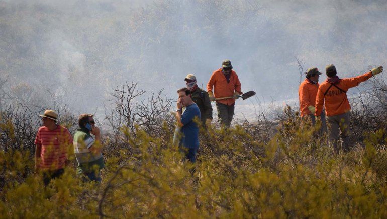 Sobre un camino que corre bajo una línea de media tensión se habían agrupado los bomberos, donde hicieron contrafuegos, mientras que motoniveladoras de Viarse ampliaban las picadas con la idea de ponerle freno a la marcha de las llamas.