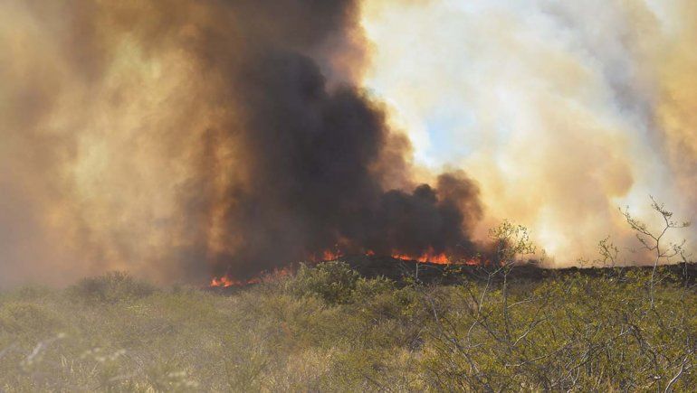 Fuentes provinciales informaron que el fuego se inició a la vera de las vías del ferrocarril que une Viedma con Bariloche. No se precisó si fue tras el paso de un tren, pero era una de las versiones.