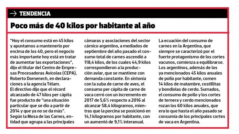Para reforzar su teoría, sostiene que antes había carnicerías en todos los barrios, pero que hoy esos comercios fueron reemplazados por las pollerías, que se especializaron en darle un valor al producto y hoy elaboran milanesas, hamburguesas, pollo a la pizza, arrollados y hasta despachan picada de pollo. Toda una novedad.