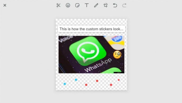 El diseñador de stickers de la app abrirá una interfaz transparente similar a un lienzo para que el usuario diseñe su propio sticker. Allí, uno puede seleccionar partes de una imagen seleccionando manualmente el contorno, añadir emojis de la biblioteca de WhatsApp, insertar texto, hacer garabatos con un lápiz y recortar la imagen.