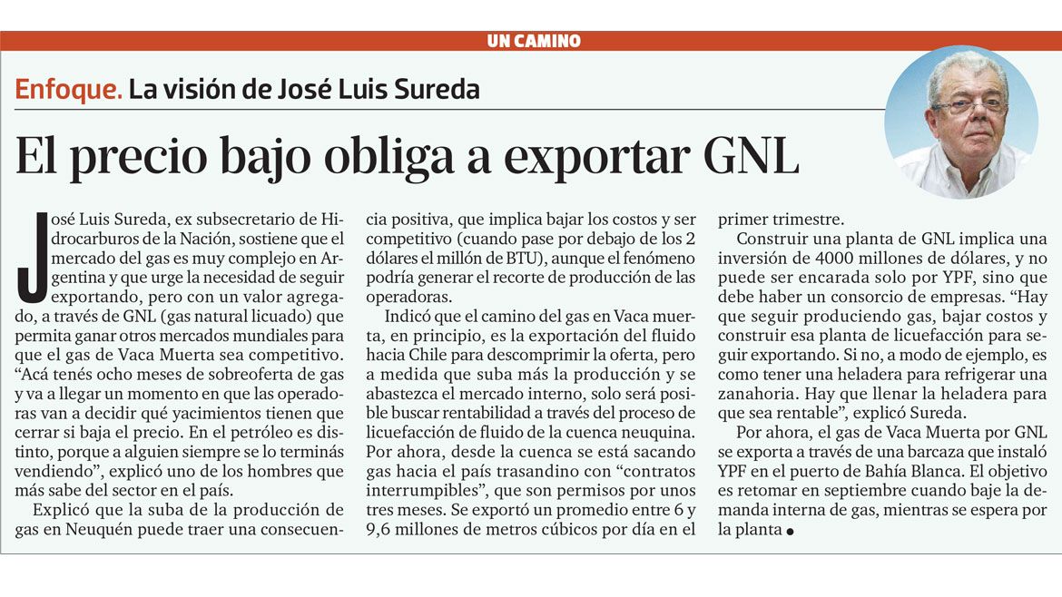 La noticia, que ya se pronosticaba por el ritmo de actividad que le impregna Vaca Muerta, abre más preguntas hacia el futuro. ¿Qué sucederá con tanto gas en un mercado donde hay ocho meses de sobreoferta? ¿Qué decidirán las operadoras en caso de que se derrumbe el precio del gas por exceso de oferta? El interrogante viene asociado a las decisiones en materia de política energética en un plazo de cinco años. Los especialistas consideran que un exceso de oferta en el gas (de manera cíclica) bajará aún más el precio, por debajo de los 3 dólares el millón de BTU. Si bien los números son comparables a la competitividad que genera hoy la cuenca de Permian en los Estados Unidos, la baja del precio podría poner un freno a la producción, de no generar más inversiones para cubrir la demanda local y exportar (ver recuadro).
