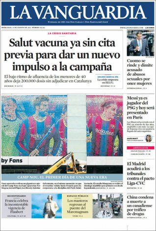 La Vanguardia, en tanto, publicó en su portada una foto simbólica: la de un operario retirando una gigantografía de Messi en el Camp Nou. "El primer día de una nueva era", sintetizó.