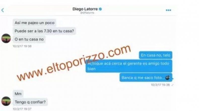 En las últimas horas se conocieron unos supuestos chats entre Diego Latorre y la conductora radial, con alto contenido sexual, en el que arreglaban un encuentro en un hotel alojamiento.
